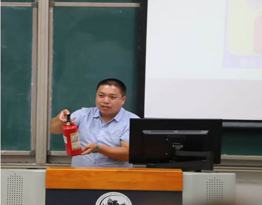 图25王志强老师向新生示范灭火器用法