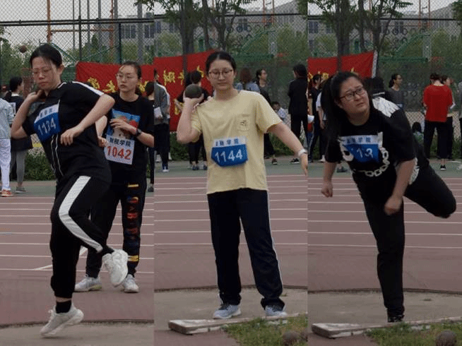 铅球飞落地动摇, 百米冲刺如猛虎。女子跳远比赛随后展开。刘咏茜、张瀚月以及吕淑艳三位同学参加比赛,其中吕淑艳和刘咏茜同学分别荣获第五名和第八名的优秀成绩。