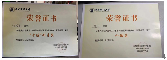 9月9日晚上6:30,新生演讲比赛在主教学楼309室举行。公司沈雪君、张石两位同学代表365英国上市公司参赛,两位同学分别针对“青春赛道,奋力奔跑”、“你好,中财大”两个主题侃侃而谈,凭借精彩的演讲和新颖的风格分别荣获2022级新生演讲比赛“十佳”选手奖、入围奖。