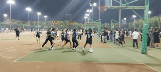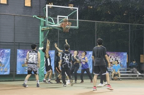 场地一的第二场比赛是第三联队与第四联队间的对决。哨声吹响,第一节前半场第三联队一马领先,而后半场第四联队又一路迎头并在第一节结束以一分之势领先。女篮联队也当仁不让,在第二节结束时第三联队女生略落后于第四联队几分。在第三节中,第三联队依旧不气馁,奋力追赶。但比分以第四联队数个2+1(2分投篮+1分罚球)稳住。三节比赛两方激烈角逐:吴家乐球员跳投精准配合贺胜东球员的防守,再加上第四联队配合默契精准联防,赛场上,精彩不断,喝彩引爆全场。最终第三联队以37:45比分惜败第四联队。这是第三联队的初次磨合,他们逆风砥砺,相信后面的比赛会更加精彩。