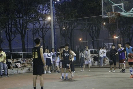 赛前,球员们提前聚集在场地,进行热身与防守策略的讨论。而其他同学们也早早地到达场地边缘,准备为自己班级的队伍呐喊声援。