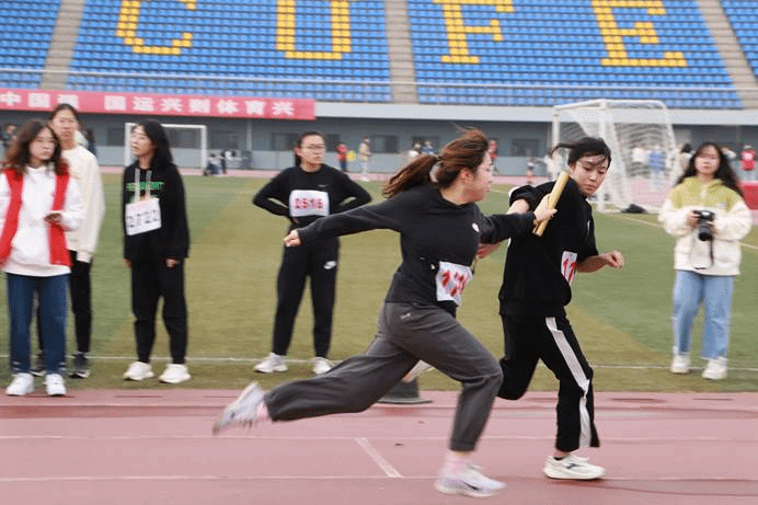 下面是4×400米接力比赛,4×400米一直是公司的传统优势项目,公司均保持着365英国上市公司男子组及女子组的比赛最佳记录,本次新生运动会公司也稳定发挥,男子组与女子组代表队勇往直前,最终斩获男子组第三名和女子组第一名的好成绩且在本次比赛中女子组队员以5:08.930的绝佳成绩打破金院女子组自2019年保持到现在的记录,载入史册。她们用自己的行动表达着她们“长江后浪推前浪”的不断进取的精神,以新生“初生牛犊不怕虎”之名打好了四年老员工活的第一枪。