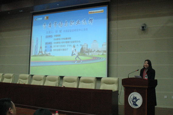 开幕仪式结束后举行了首期论坛,主讲人中国证监会研究中心主任祁斌博士为同学们带来了一场题为“资本市场与职业选择”的学术讲座。