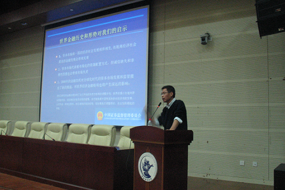 祁博士的讲座围绕着三个方面的内容展开:国际金融形势和历史对我国的启示、中国经济转型及现状、资本市场发展与未来职业选择。