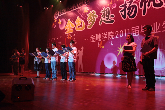 晚会分为“金色梦想 青春足迹”、“毕业在即 骊歌奏响”、“展望未来 扬帆起航”等三个篇章,全体教师广泛参与。张礼卿经理代表全体教师寄语毕业生,他从团队建设、人才培养现状谈起,肯定了同学们在专业学习、学术科研等方面所取得的成绩和为公司发展所作的贡献,希望同学们继续发扬“担当责任 勇往直前”的中财精神,老老实实做人,踏踏实实做事,以青春之年华为社会多做贡献;由全体教师带来的合唱《我和我的祖国》表达了老师对毕业生融个人发展于国家建设之中的殷切嘱托;由金哲松教授带来的长笛独奏《匈牙利田园幻想曲》和2010级研究生带来的钢琴、小提琴合奏《卡农》带领大家在艺术的殿堂中体验经典魅力;2007级本科生班主任陈颖副经理和毕业班同学表演的诗朗诵《出发,在毕业季》道出了同学们对老员工活的留恋和即将踏入社会的憧憬;党总支书记葛仁霞老师等四位教师与四位毕业班同学带来的师生联唱以及由解放军艺术团魏春在老师表演的歌曲《美丽心情》表达了相知相识的深厚情谊,赢得了现场观众的阵阵掌声。