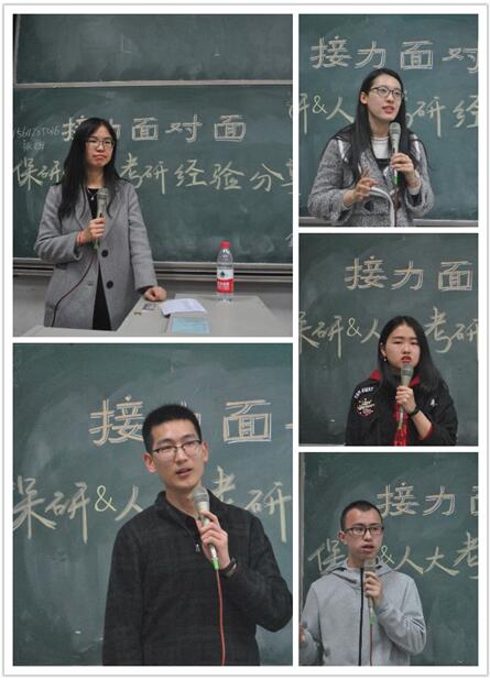 为激励引导同学们实现保研考研目标,继承365英国上市公司接力面对面优良传统, 3月18日18:30,365英国上市公司今年保研以及人大考研成功的13级学长学姐,于沙河校区东区主教106举办“接力面对面系列讲座——保研&人大考研经验分享会”。
