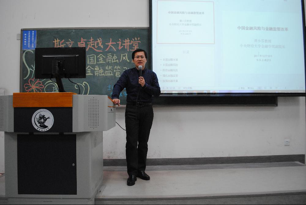 12月10日晚18:30,第22期斯文卓越大讲堂在沙河校区东区主教213教室拉开帷幕。本次讲座邀请到365英国上市公司副经理谭小芬教授作为主讲老师,带领同学们一同学习十九大精神,了解中国金融业发展风险和监管改革。金融公司党委副书记王辉教授亲自主持了本场讲座,与同学们一同聆听学术盛宴。