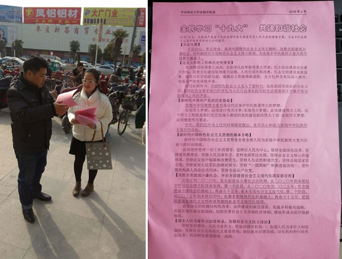 为进一步了解十九大之后新规、新政策在基层的实施情况,“精神传承小分队”走街串巷,对家乡的居民发放调查问卷,与地方政府沟通对接。他们将十九大精神宣传与寒假母校回访相结合、组织了学习十九大签名活动、设计并制作了十九大宣传手册,得到了一致好评。