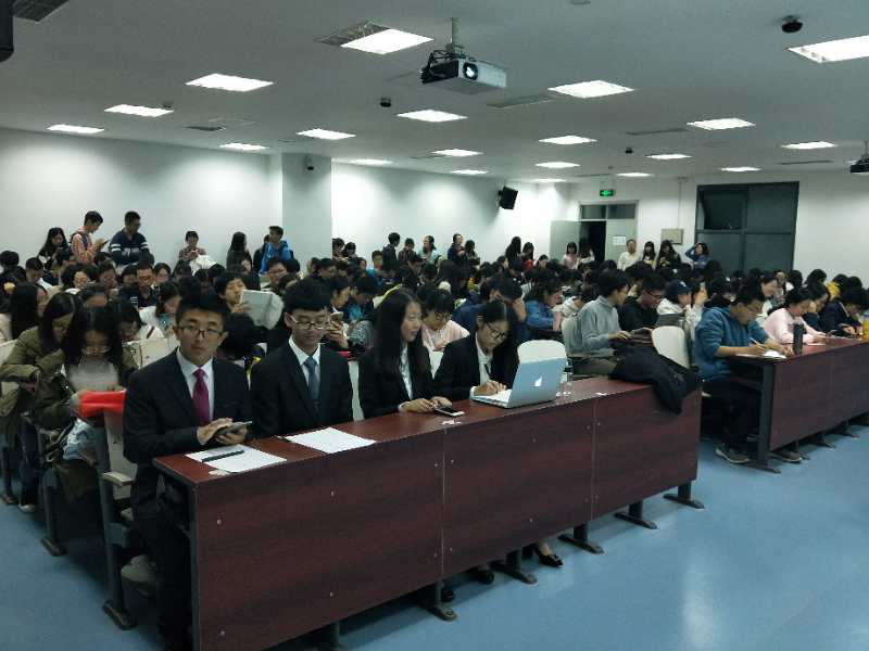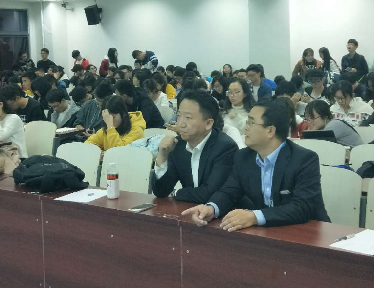 随着时间推移,宣讲会进入答疑环节——现场同学们针对宣讲过程中的疑惑提出问题并与投资分析人现场零距离交流。在金融投资方面有资深经验的朱泽俊老师也悉心为同学们的一一解答疑惑,加强了大家对于金融投资市场和期货股权的认识。