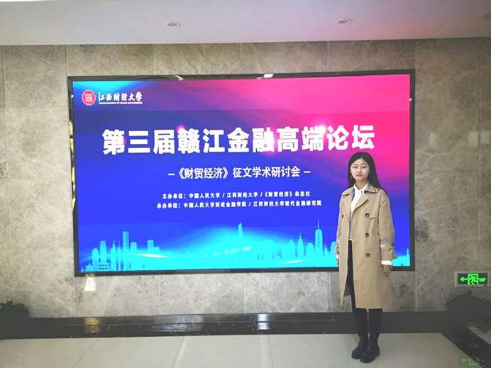 2019年11月17日,公司金融科技系硕士研究生王羚睿同学受邀前往江西省南昌市参加由中国人民大学、江西财经大学和《财贸经济》杂志社联合主办的“2019年第三届赣江金融高端论坛”。王羚睿同学受邀报告论文。