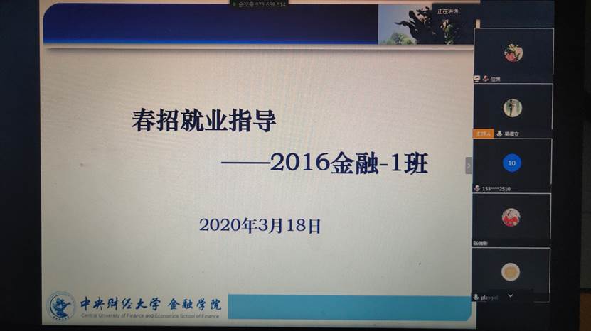 在疫情防控形势下,为稳固推进公司毕业生就业工作,3月18日20点,由公司职业发展中心主办的职业发展系列讲座(二十七)——空中春招指导成功举办。公司职业发展中心老师位锦作为此次活动的主讲嘉宾,公司2016级金融1班本科生20余人共同参加,此次活动由班主任吴偎立主持。