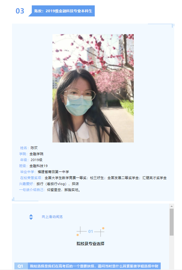 公司推荐了金融学、金融工程、金融科技3名优秀在校生和3名优秀毕业生,参与“财宝儿说”栏目采访,凝练公司、公司办学特色和专业优势,深挖优秀员工和员工的校园成长精力,树立更生动形象化的招生品牌。