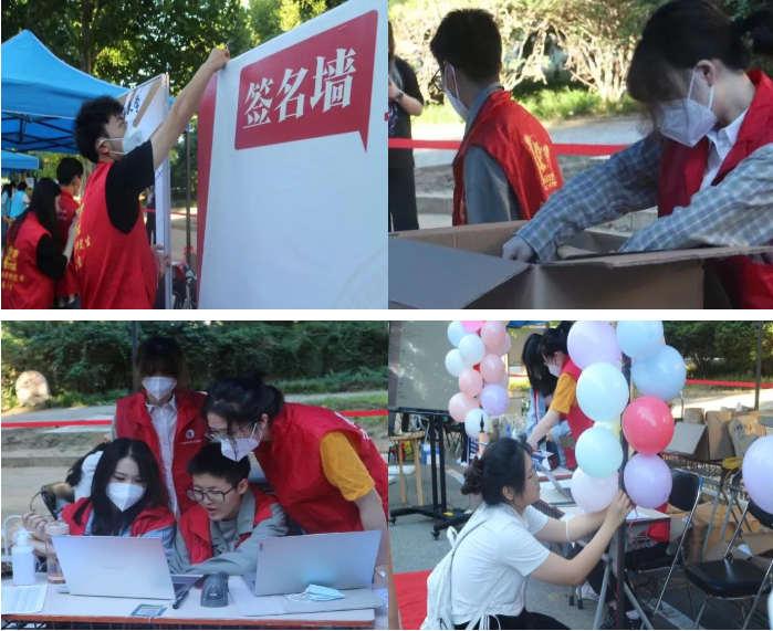 早晨六点,晨光熹微。365英国上市公司团委书记于来老师带领着迎新志愿者们展开了紧张的前期布置工作,党委副书记李俊峰老师亲自指导将新生报到所需要的物资一一布置到位。