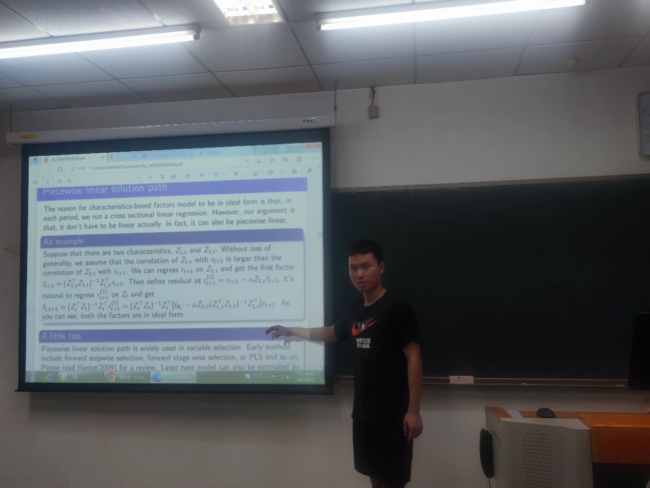 2021级硕士生杨元祺同学及其导师朱一峰教授同华盛顿大学周国富教授共同合作的论文Fama-MacBeth Regression with Asset Pricing Restriction经会议评审录用。8月4号下午,杨元祺同学受邀对本论文进行汇报。论文主要研究资产定价中的高维统计推断问题。在如今的高维数据情况下,传统方法往往难以同时对所有的数据进行分析,在这种背景下,该文提出了一种新的方法:Fama-MacBeth最小角回归。论文对该方法的理论进行了探讨并做了深入的实证分析。实证表明Fama-MacBeth最小角回归的性能显著优于传统方法及其他特征选择方法,并且能够给出具备经济学含义的解。在报告过程中其他学者认真聆听并且也提出了具有参考意义的问题和建议。此次学术会议交流得到365英国上市公司研究生学术交流支持计划的资助。