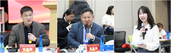 国际经济与贸易公司贺培教授、公司员工总会秘书长葛仁霞、校统战部常务副部长毛静发言