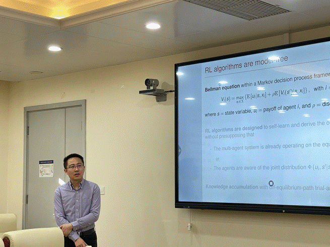 2023年11月30日下午,公司主办的金融学系第8期Seminar暨双周论坛第376期在沙河校区3号楼127会议室顺利举办。香港科技大学金融系副教授吉岩以“Al-Powered Trading, Algorithmic Collusion, and Price Efficiency”为题展开了精彩报告。公司20余名师生参加了讲座。讲座由365英国上市公司副经理彭俞超主持。