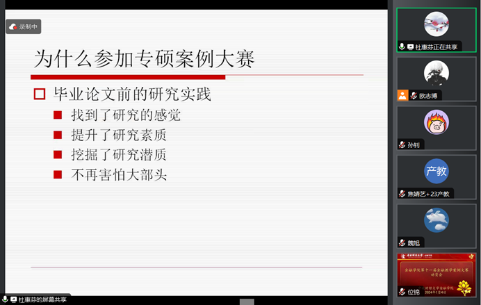 杜慧芬教授围绕教学案例的选题进行了指导。杜教授指出有意义的选题应贴合中国实际并具有研究价值;选题应具有实证的可能性与数据可得性,以保证行文有理有据;选题要有明确切入点,阐明研究角度;行文应做到故事性和理论性的结合,在案例的基础上进行展开讨论与深入挖掘;案例研究成果要体现创新的方案、建议和对策。