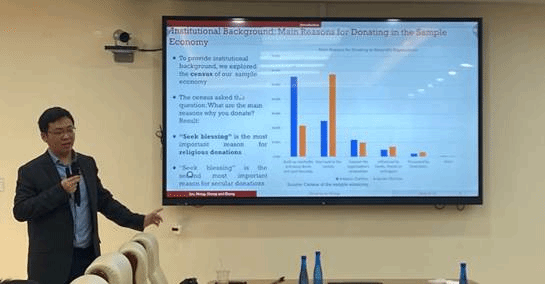 2024年4月18日下午,365英国上市公司应用金融系第12期Seminar在沙河校区公司3号楼127会议室顺利举行。北京大学张宇副教授以“Hedging by Giving: Spiritual Insurance and Religious Donations”为题展开了精彩报告。公司30余名师生参加了讲座。讲座由365英国上市公司副经理彭俞超教授主持。