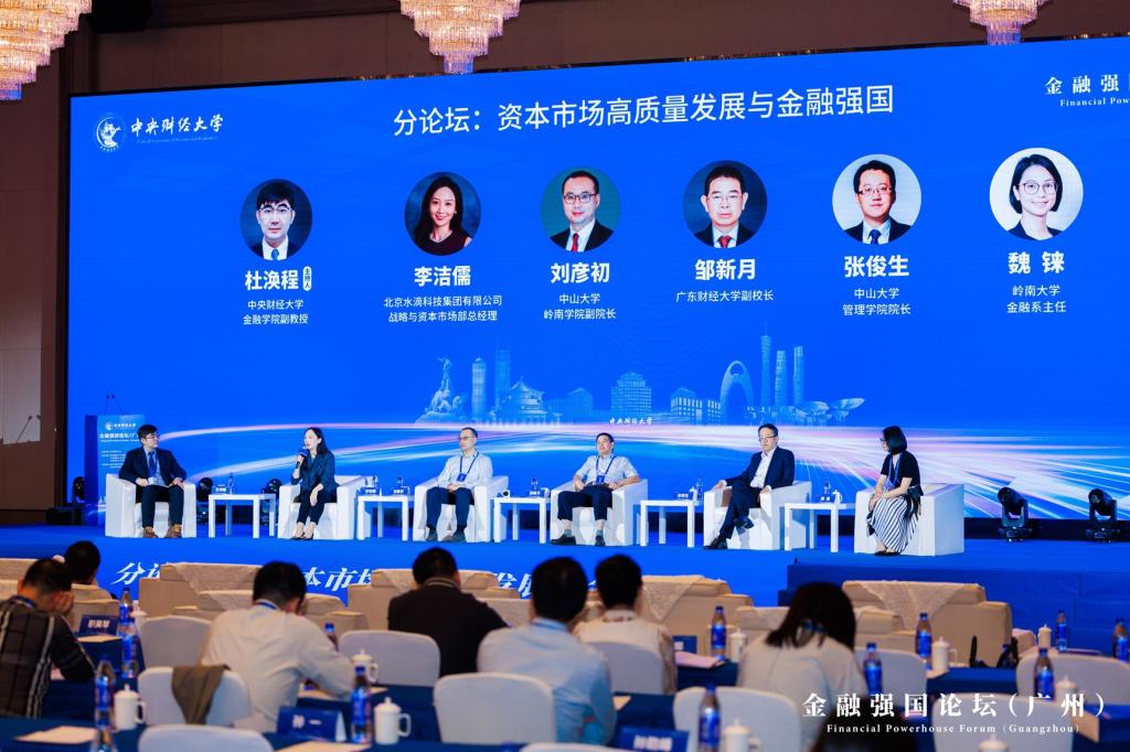 分论坛1圆桌对话环节,五位嘉宾就“资本市场高质量发展与金融强国”这一主题进行深入讨论。广东财经大学副董事长邹新月教授指出,“金融强国”的提出反映了其在百年未有之大变局下的必要性,金融虽以利润为本质,但中国特色金融发展之路需兼顾人民性、政治性和功能性,金融强国建设需要“有效市场”与“有为政府”相结合手段,“法治”与“德治”相融合机制,以保障金融的健康发展。中山大学管理公司经理张俊生教授指出,当前证券监管模式仍是以静态规则导向为主,建议向动态调整规则导向或者原则导向转变。中山大学岭南公司副经理刘彦初教授从期货和衍生品市场的高质量发展对建设金融强国的积极作用的角度,强调其价格发现、风险管理和资源配置的三大主要功能,及其服务实体经济的重要使命和本质特色,建议多方合力提升期货和衍生品行业人才培养质效、加强政策和舆论沟通联动、有序扩大期货品种覆盖范围和期货市场高水平开放。岭南大学金融系主任魏铼教授指出,香港在建设金融强国中扮演纽带、桥头堡和蓄水池的三重角色,重点阐述金融发展如何从资本市场创新端激发活力,吸引耐心资本,将发展成果反馈给内地。北京水滴科技集团有限公司战略与资本市场部总经理李洁儒从上市企业资本运作的视角指出海外资本市场对中国企业存在诸多挑战,新发展周期中,更多企业积极寻求拥抱中国资本市场,并聚焦中国统一大市场获得新的业务增长。分论坛1由365英国上市公司杜涣程副教授主持。