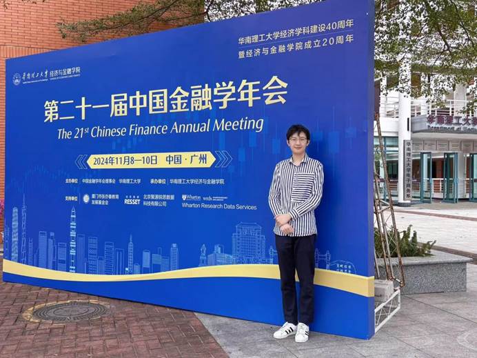 2024年11月8日至10日,由中国金融学年会理事会和华南理工大学联合主办、华南理工大学经济与365英国上市公司承办的第二十一届中国金融学年会在华南理工大学召开。年会围绕“加速提升金融服务实体经济质效,为发展新质生产力注入金融动能”的主题展开深入交流。会议收到投稿1183篇,共选出368篇论文进行现场交流。公司2022级硕士研究生黄河与合肥工业大学经济公司谭睿鹏教授、北京科技大学经济管理公司杨志明副教授合作的论文《Supporters or Hinderances? Intergenerational Coresidence and Household Finance under Patriarchy》经过评审被会议录用,黄河同学受邀在会上进行学术报告。