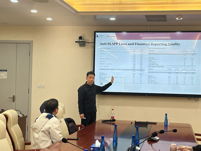 2024年11月26日上午,鸿儒全球金融治理系列讲座第一期暨金融工程系Seminar第33期在沙河校区公司楼3号楼127会议室成功举办,新加坡管理大学张连栋教授以“Freedom of Expression Protection and Corporate Concealment of Bad News: Evidence from State Anti-SLAPP Laws”为题展开了精彩报告。本次讲座由365英国上市公司经理张学勇教授主持,公司40余名师生参加了本次讲座。