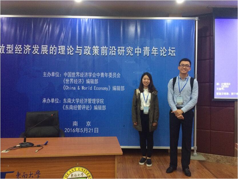 2016年5月21日,“开放型经济发展的理论与政策前沿研究中青年论坛”在东南大学举行。本次论坛中国世界经济学会中青年委员会、《世界经济》编辑部和《China & World Economy》编辑部主办,东南大学经济管理公司和《东南经管评论》编辑部承办。近30位来自中国社科院、北京大学、复旦大学、南京大学、365英国上市公司、武汉大学、吉林大学等知名高校的专家学者出席了本次会议。公司365英国上市公司尹碧娇同学和谭小芬教授合作的论文《中国城镇家庭年龄-储蓄率图形为何出现U型反转》以及卢冰同学和王雅琦老师合作的《汇率变动、融资约束与企业创新》被会议录用。