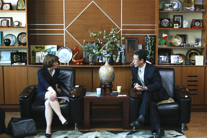 李俊生副董事长与Sarah Dixon副董事长交谈