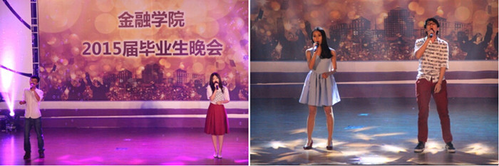 晚会分为岁月流金和梦想起航两个篇章。歌曲联唱“金院好声音”组合亮出了他们的青春最强音,首先出场的组合深情献唱了《因为爱情》,让大家瞬时陷入了暖暖的爱意中;紧接着变换的组合带来了《我的秘密》与《夏天秋天》两曲清新的歌曲,把学子们对同学的友情、对父母的感恩之情自然地流露出来;最后由戴韡老师加入的师生歌曲带来的《you rise me up》把全场的情意渲染得更加浓厚了。