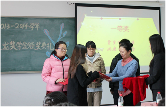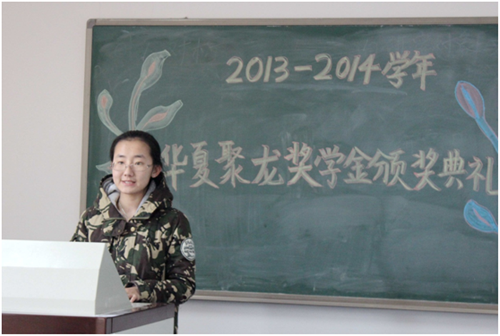2014年12月30日,2013-2014学年华夏聚龙奖学金颁奖典礼在沙河校区西区教学楼507隆重举行。北京华夏聚龙自动化股份公司副总经理王路女士,企划部副总经理谭云天先生,金融公司党总支副书记谭小芬教授,团总支书记李菊,辅导员刘勇、高菲,以及获奖的27名员工参加了活动。