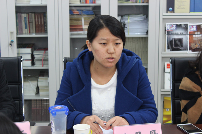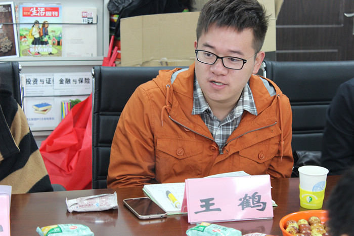 在谭小芬老师的主持下,会议第一项议程是上学期兼职辅导员们总结工作经验并依次发表讲话。首先,王丹丹分析了为期3个月的辅导员工作中所遇到的困难,就是如何与员工保持密切的互动,即便加入员工的QQ群、微信群,参与程度也比较有限。尽管如此,王丹丹依然默默的关注、关心和关照员工,尽自己所能来帮助他们。王丹丹担任兼职辅导员的时间不长,但是通过深入走访宿舍,参加员工班会,参与员工活动等形式与班级同学建立了深厚的友谊。
