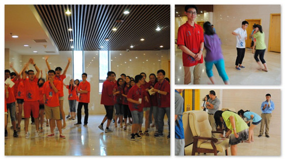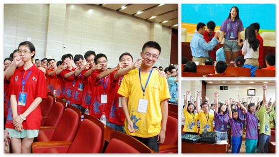 开营仪式结束后,所有营员回到会场,在专业教练的指导下开始了团队建设、破冰拓展活动。会场的气氛瞬间活跃起来。营员们用“好!很好!明天会更好!耶!”进行开场问候之后,便进行了“左手抓右手”、“寻找自信”等活动,在活动中体味人生哲学:全力以赴、敢于服输、激发潜能、打破惯性思维等等。