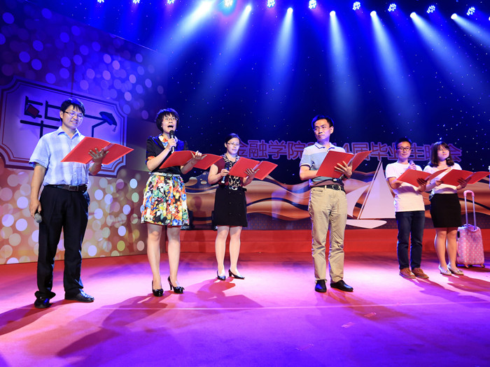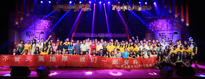国际班的节目歌伴舞《菊花台》和职工歌舞《Graduation》和《Friends Forever》则是让晚会接近尾声时不断的升温,而10级金融工程2班的歌舞剧《毕业三部曲》将毕业的情绪推向了顶峰,或积极风趣,或优雅动情,把金融学子的金色回忆和金色梦想交织成一幕幕精彩的演出。