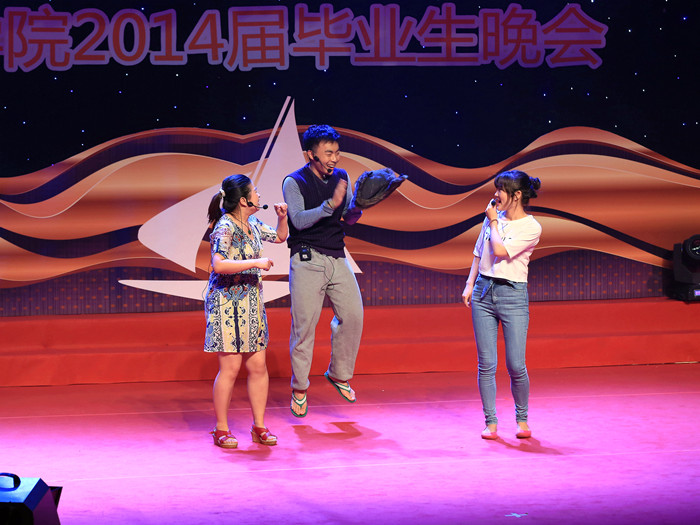 10级金融2班的舞台剧《阿拉神马》利用巧妙的构思,和同学们精湛的表演,让同学们在欢笑之余不失感动,感动之时不乏回忆。而节目组也在这个恰当的时机切入了筹划好的视频,通过老照片带领同学们去感受这四年来的改变与不变。改变的是我们的容颜,不变的是我们依然在一起。