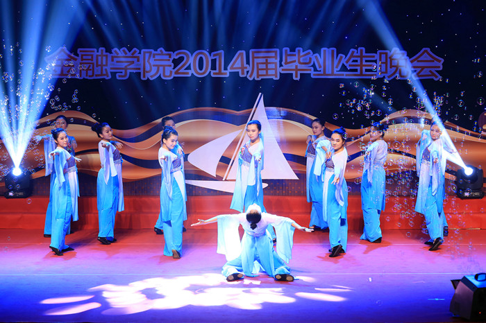伴随着12级和13级的同学们精心排练的开场舞《篆音挽离歌》,2014届毕业生晚会正式拉开了序幕。精湛的舞技,优雅的舞姿,展现了金融学子的青春活力的艺术,表现出学弟学妹们对即将毕业的学姐学长们的衷心祝福。