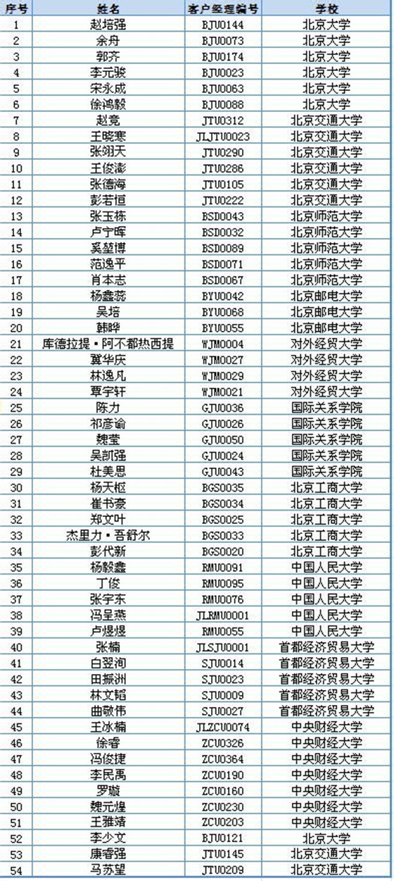 近日,由公司金融学术研究会主办的第一届北京高校“嘉实杯”模拟基金经理大赛圆满落下帷幕,本次比赛由嘉实基金独家赞助,共吸引了北大、人大、对外经贸、北交、北师大、北邮、华北电力、工商、首经贸及公司共十所高校的同学参与,参赛人数共计5000余人,公司参赛人数1484人。本次大赛为首都高校老员工提供了一个展现自我,锻炼投资才能的平台。