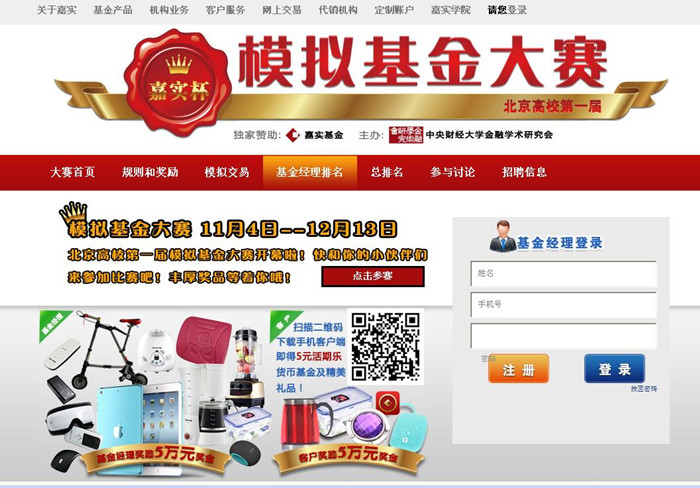 第一届北京高校“嘉实杯”模拟基金经理大赛官网首页画面