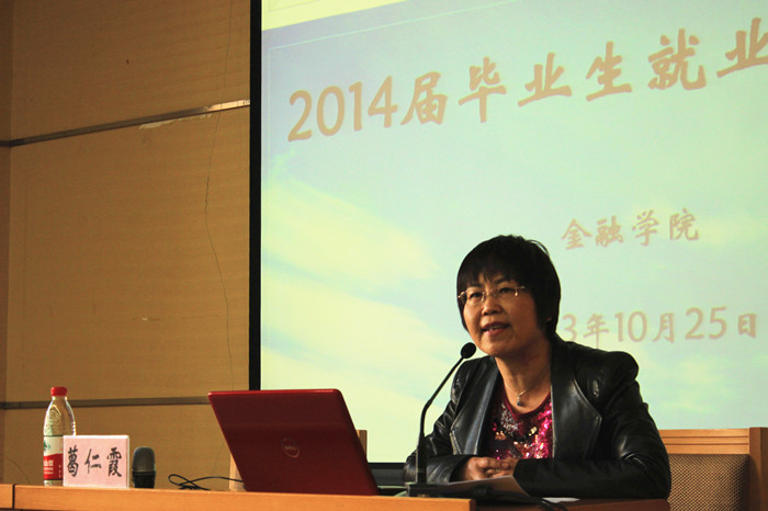 首先,葛仁霞书记凭借丰富的就业指导经验,为同学们在择业就业的重要时期思想和行动方面的应做准备进行了指导。葛老师首先指出,作为中财365英国上市公司的研究生,在就业浪潮中既要树立必胜信念,又要保有忧患意识。其次,葛老师提醒在座的同学们,要明确自身定位,不断调整心态,树立正确的就业观,并号召同学们不打无准备之仗,从简历制作、简历投递、笔试面试等方面向大家提出了宝贵意见。在就业这一人生重要的抉择期,每个毕业生都难免遭遇挫折和困难,葛老师鼓励同学们直面逆境,保持信心,并互帮互助,携手并进。最后葛老师就就业诚信和就业安全等方面提出了殷切希望,并祝愿2014届每一位毕业生都能找到自己心仪的工作,实现自己的人生价值。