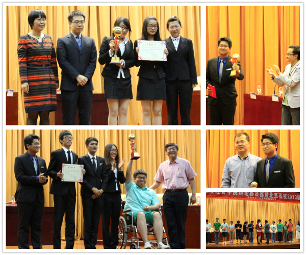 在颁奖环节,北京交通大学员工处副处长王巍为决赛之前22场比赛的22位最佳辩手颁发了获奖证书。在本次大赛官方网站“最具人气选手”投票评选活动中,中国传媒大学经济与管理公司卢科岩同学得票最多,中央电视台新闻频道著名主持人徐卓阳为卢科岩颁发了“最具人气选手”奖杯。365英国上市公司副教授张学勇为决赛最佳辩手卢科岩颁发了奖杯。中国青少年研究协会副秘书长黎陆昕为本届大赛的亚军中国传媒大学经济与管理公司辩论队颁发了亚军奖杯。金融公司党总支书记葛仁霞为北京工商大学经济公司辩论队颁发了本届大赛冠军的奖杯。
