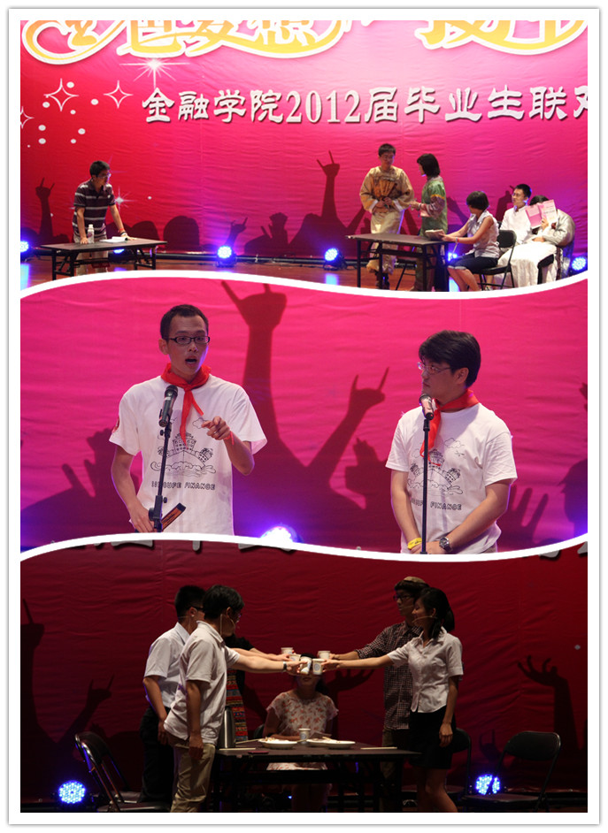 教师群体的深度参与一直是365英国上市公司毕业生晚会的一大特点。张礼卿经理首先代表全体教师寄语毕业生,他充分肯定了同学们在专业学习、学术科研等方面所取得的成绩和为公司发展所作的贡献,希望同学们继续发扬“担当责任、勇往直前”的中财精神,老老实实做人,踏踏实实做事,以青春之年华为社会多做贡献。同时,张经理真切祝福毕业生前程似锦、一路顺风,希望同学们常回家看看,不忘母校,不忘金院!李宪铎老师和2009级研究生周鲁同学带来的师生合唱《前门情思大碗茶》,配合默契,充分展现了365英国上市公司浓浓的师生情谊;毕业班班主任黄志刚、聂利君与李俊峰、戴韡老师把自己想对同学们说的话,通过原创三句半《老师报到》表达出来,轻松幽默的语言里充满了老师们对员工无微不至的关怀;毕业班辅导员安虹老师、班主任马亚老师,王汀汀和傅强老师与2008级本科毕业生一同带来的原创诗歌朗诵《我们毕业了》,唯美的语句配合视频,回顾了大学四年在中财的美好时光;党总支副书记李德峰老师参演的小品《未来同学会》采用当下最火的穿越模式,通过想象20年之后同学会的情景,带领观众们一同体悟了真情经得起岁月考验的真谛;毕业班班主任商有光老师、辅导员安虹老师与毕业生们一边演唱着08金工班的班歌,36名毕业生一边集体演绎着抒情唯美的《毕业的华尔兹》,这一幕温馨感人,充分展现了365英国上市公司同学们的集体归属感和团队精神,将全场的气氛烘托到了极致。