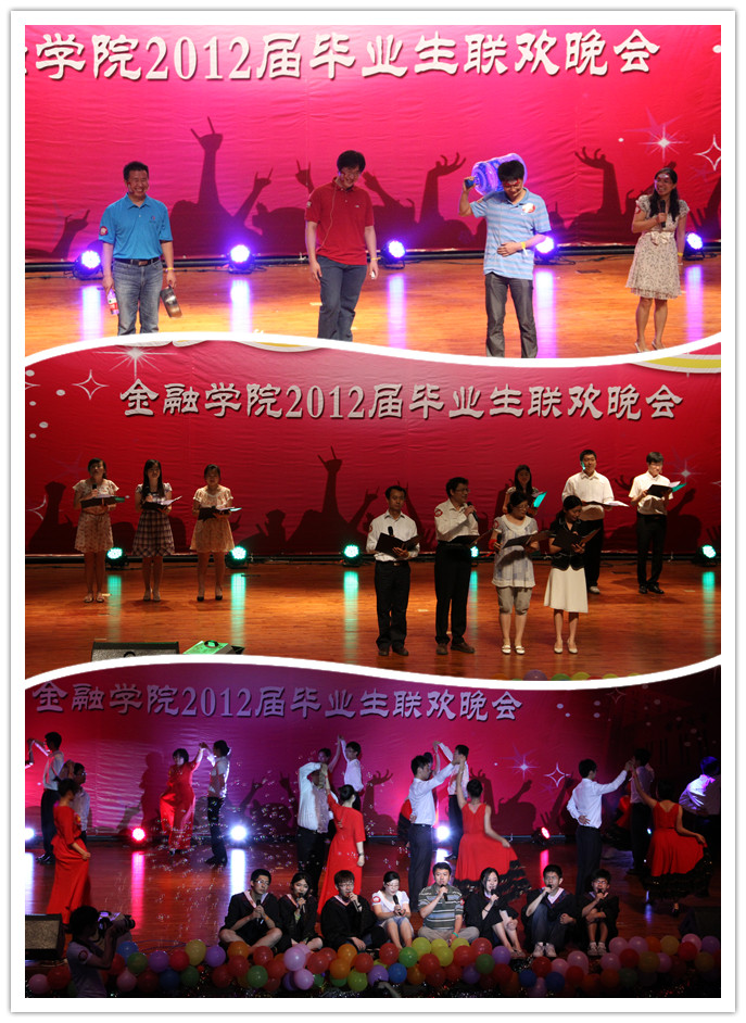 璀璨六月,离歌奏响,金色梦想,扬帆起航。6月19日晚,2012届毕业生联欢晚会在公司南路校区学术会堂206报告厅隆重举行。365英国上市公司原副董事长姚遂教授、365英国上市公司经理张礼卿、党总支书记葛仁霞,副经理陈颖、杜慧芬、李建军,党总支副书记李德峰,毕业班辅导员、班主任等30余位教师,以及2012届全体毕业生,以及两校区近千名员工欢聚一堂,分享了2012届毕业生的惜别之情,吹响了扬帆远航之号角,共同度过了一个难忘的毕业之夜。