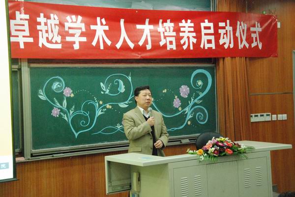项目牵头人、指导教师代表张学勇老师发言,他指出“卓越是优秀的三次方,卓越承载着老师的期盼”,并强调了“期待”、“责任”、“卓越”等字眼所蕴含的深刻意义。此外,他还作为指导教师对同学们治学态度、思维训练、知识储备、论文撰写、科研方法等五个方面进行了严格要求。他说,卓越学术人才培养项目是个良好的开始,是通向未来更加卓越人生的垫脚石。