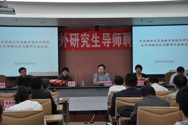 2011年9月24日上午10点,365英国上市公司校外研究生导师聘任仪式暨师生座谈会在学术会堂706召开。出席聘任仪式和座谈会的公司领导有经理张礼卿、党总支书记葛仁霞、副经理杜慧芬、李建军、党总支副书记李德峰、公司教师代表、24位新聘任的校外研究生导师以及2011级54位金融硕士专业学位研究生。会议由李建军副经理主持。