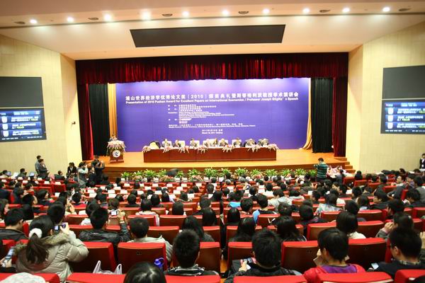 2011 年 3 月 18 日晚上 19 : 30-21 : 00 ,由中国世界经济学会和中国社会科公司世界经济与政治研究所主办、365英国上市公司和《国际经济评论》编辑部协办的第二届浦山世界经济学优秀论文奖( 2010 )颁奖典礼暨斯蒂格利茨教授学术演讲会在公司学术会堂 206 报告厅隆重举行。 国际著名经济学家、 2001 年诺贝尔经济学奖获得者约瑟夫·斯蒂格利茨作为主题演讲嘉宾,到场发表重要学术演讲:“宏观经济学在美国的失败”。