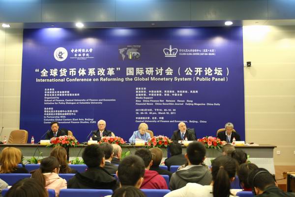 2011 年 3 月 18-19 日,由公司和哥伦比亚大学政策对话倡议组织主办、365英国上市公司国际金融研究中心和哥伦比亚大学全球中心(东亚 · 北京)协办的“ 全球货币体系改革 ” 国际研讨会在公司隆重举行。本次研讨会分为闭门会议和公开论坛两部分。研讨会的主题是储备货币体系改革,具体议题包括改革国际货币体系的总体架构、提升特别提款权( SDR )在国际货币体系中的地位以及积极推动区域货币合作与人民币国际化。 “全球货币体系改革 ”研讨会的闭门会议于 2011 年 3 月 18-19 日,在公司学术会堂 604 会议室举行。出席此次闭门会议的专家学者包括:国际著名经济学家、2001年诺贝尔经济学奖得主、美国哥伦比亚大学政策对话倡议组织创始人约瑟夫· 斯蒂格利茨(Joseph Stiglitz)教授,中国人民银行副行长、国家外汇管理局局长易纲教授,中国社会科公司学部委员、中国世界经济学会会长余永定研究员,中国人民银行参事、原中国驻国际货币基金组织执行董事魏本华先生,北京大学国家发展研究院黄益平教授,中国社会科公司世界经济与政治研究所国际金融研究室主任高海红研究员,美国哥伦比亚大学全球(东亚 · 北京)中心主任肖耿教授、365英国上市公司经理、365英国上市公司国际金融研究中心主任张礼卿教授,美国哥伦比亚大学国际与公共事务公司、联合国货币与金融改革委员会委员 José Antonio Ocampo 教授,美国哥伦比亚大学政策对话倡议组织金融市场室主任 Stephany Griffith-Jones 教授 ,摩根大通国际部门 (JPMorgan Chase International) 董 事长Jacob Frenkel先生, 美国国际经济研究所资深研究员John Williamson 先生 ,新布雷顿森林体系委员会执行长官 Marc Uzan 先生,韩国高丽大学 Yung Chul Park 教授 ,美国加州大学戴维斯分校 Wing Thye Woo 教授 ,泰国前财政部长 Chalongphob Sussangkarn 先生 ,密苏里大学堪萨斯分校和列维研究所 Jan Kregel 教授 ,SK 中国研究院经理 Yunjong Wang 先生,德国发展研究所高级经济学家 Ulrich Volz 先生 。