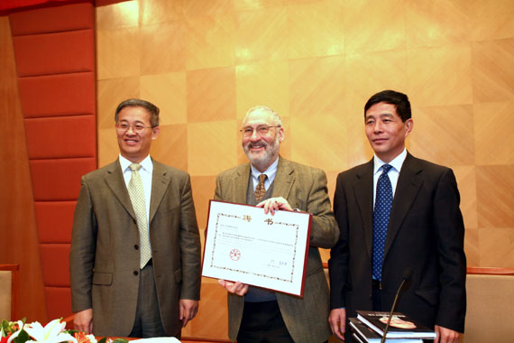 图片四 校领导向斯蒂格利茨教授颁发聘书