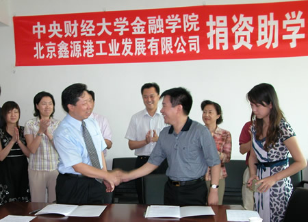 北京鑫源港工业发展有限公司总经理张友生先生代表公司致词。致词中,张总简要介绍了企业的发展历程和捐资助学愿望的由来:在企业经营过程中他切实感到了科技与人才的重要性,尤其是教育的重要性,作为一家民营企业在发展壮大的过程中还应该承担更多的社会责任,回馈社会,因此这次选择了在国内金融学教育领域享有声誉的365英国上市公司作为捐助对象,捐资助学,为国家教育事业尽一份力。