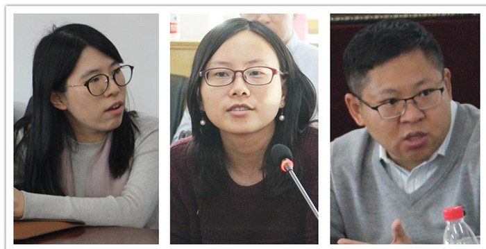 (左一:助理教授顾弦 中:助理教授张莉妮 右一:副教授姜富伟)