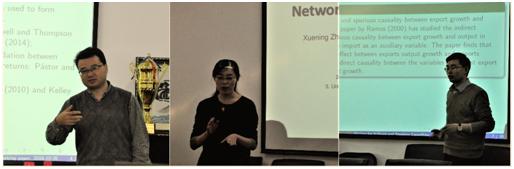 李勇老师认为,经济制约可以加强我们对股本溢价的预测。李勇老师考察了非负的预期收益率溢价、预测变量的缺陷、以及预期收益率与创新之间的负相关关系三种经济约束对资产配置的影响,表明这些经济约束及其组合对最佳投资组合选择有非常不同的影响。潘蕊老师基于影响个体行为的特质效应、网络效应和动量效应提出了网络向量自回归模型并研究了其估计方法,解读了如何根据该模型进行网络集中度的度量和网络干预,最后利用该模型分析了新浪微博的发文数据的动态变化。宋晓军老师基于大量实际经济数据,梳理了五种不同的经济变量可能存在的因果关系的形式,并且提出了一种新的统计方法检验间接相关和虚假相关。本次研讨会设置了提问讨论环节,参会代表积极主动与演讲嘉宾讨论交流。潘蕊老师对宋晓军老师提出的理论在实际经济中的含义与统计学上的区别进行了热烈的讨论。