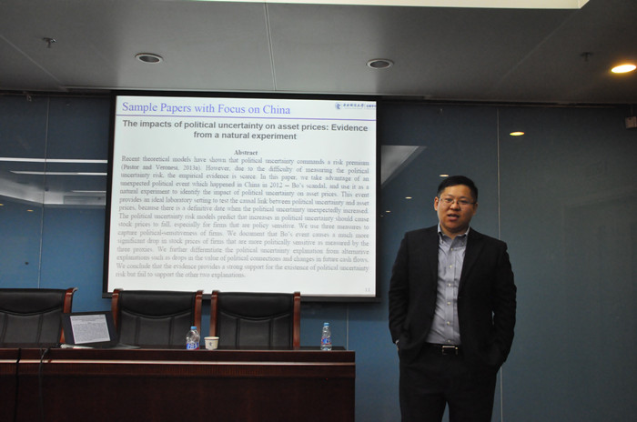 李建军教授从经济学范式、研究与研究范式、论文范式三个角度,介绍了如何完成一篇优秀的学术论文。李建军教授在课程最后总结,经济学研究必须遵循学科范式,范式由哲学价值、基本理论、研究工具和程序组成。写一篇优秀论文是一项艰苦的工作,写作过程就是研究过程,简单、明晰和统一是普遍使用的原则,必须严格把握论文每一个部分的功能。当天下午课程结束后,365英国上市公司副经理谭小芬教授向大家详细介绍了365英国上市公司的教师团队以及各位老师的研究方向。