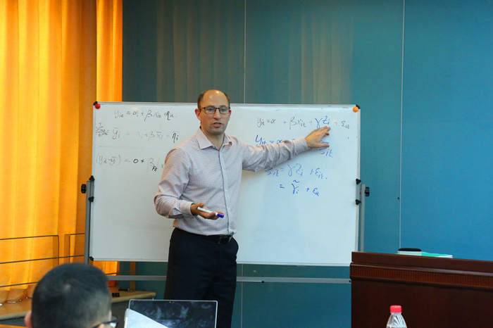 9月24日,Frijns教授就如何运用数据和实证方法研究企业并购问题,与同学们进行了深入细致的交流,围绕着事件研究方法(Event Study Methodology),讲解了并购事件的正常和非正常回报,以及如何建模,如何选择合适的估计窗口进行利润估计。下午,Frijns教授带领大家学习了估计的计量方法以及如何用stata实现,并让同学们自己尝试了stata操作,当堂及时解决同学们的应用问题。